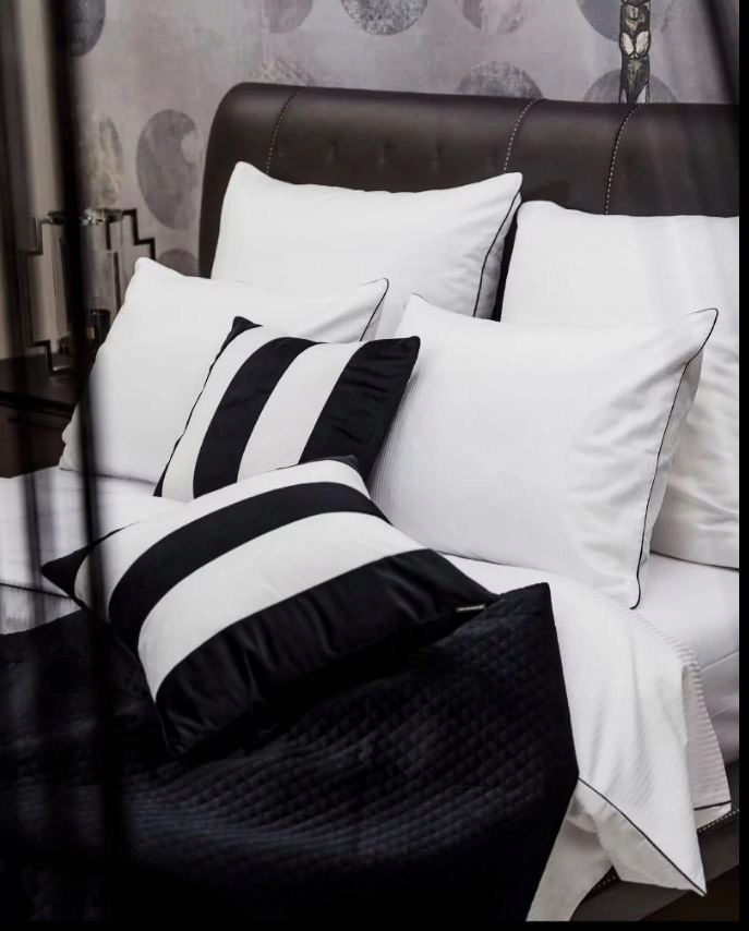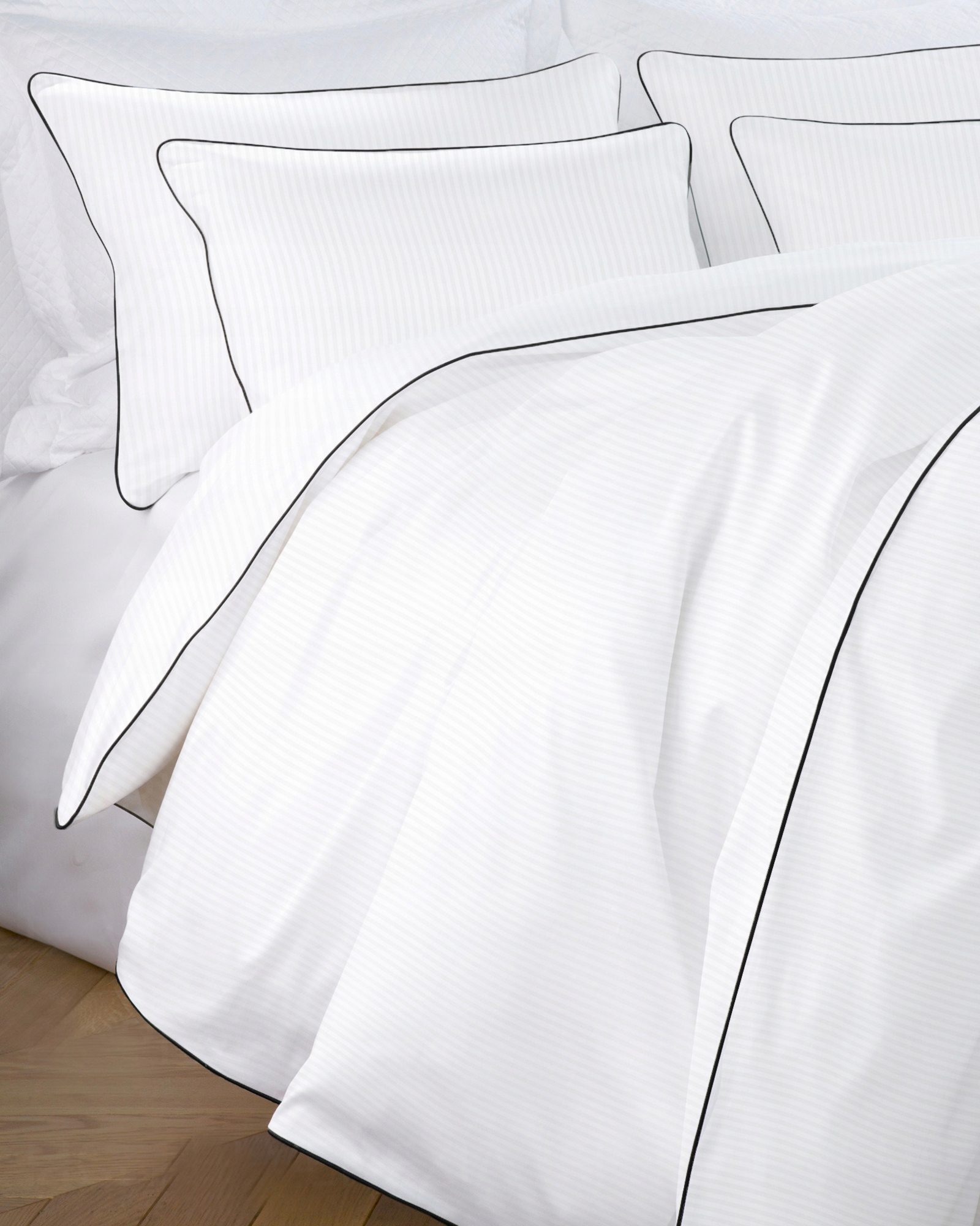 Posteljnina SAN ANTONIO iz damasta, bela s črnim robom znamke MARO HOME