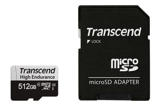 Transcend 512GB microSDXC 350V UHS-I U1 (razred 10), visoko vzdržljiva pomnilniška kartica, 95 MB/s R, 45 MB/s W