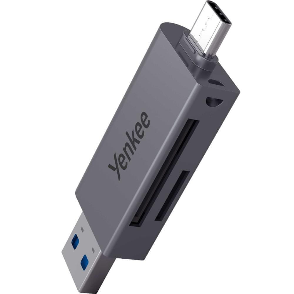 Aluminijeva zlitina Univerzalna združljivost Kompaktna velikost in enostavna prenosljivost Univerzalni bralnik kartic USB s podporo za vse različice kartic SD, Micro SD in TF. Dva priključka USB za povezavo bralnika z vsemi pametnimi napravami omogočata uporabo bralnika s pametnim telefonom, tabličnim računalnikom, prenosnikom ali osebnim računalnikom. Različica USB A 3.0 skrbi za hiter prenos podatkov s hitrostjo do 5 Gb/s. Drugi priključek USB C različice 2.0 dosega hitrosti prenosa podatkov do 480 Mb/s. Funkcija plug and play zagotavlja široko združljivost s telefoni, tabličnimi računalniki in osebnimi računalniki. Za povezavo s telefonom mora telefon podpirati funkcijo OTG. Bralnik kartic lahko hkrati zapisuje in bere podatke z dveh pomnilniških kartic. Bralnik je zaradi aluminijastega ohišja in majhne velikosti primeren za potovanja. Priključka USB A in USB C ni mogoče priključiti hkrati.