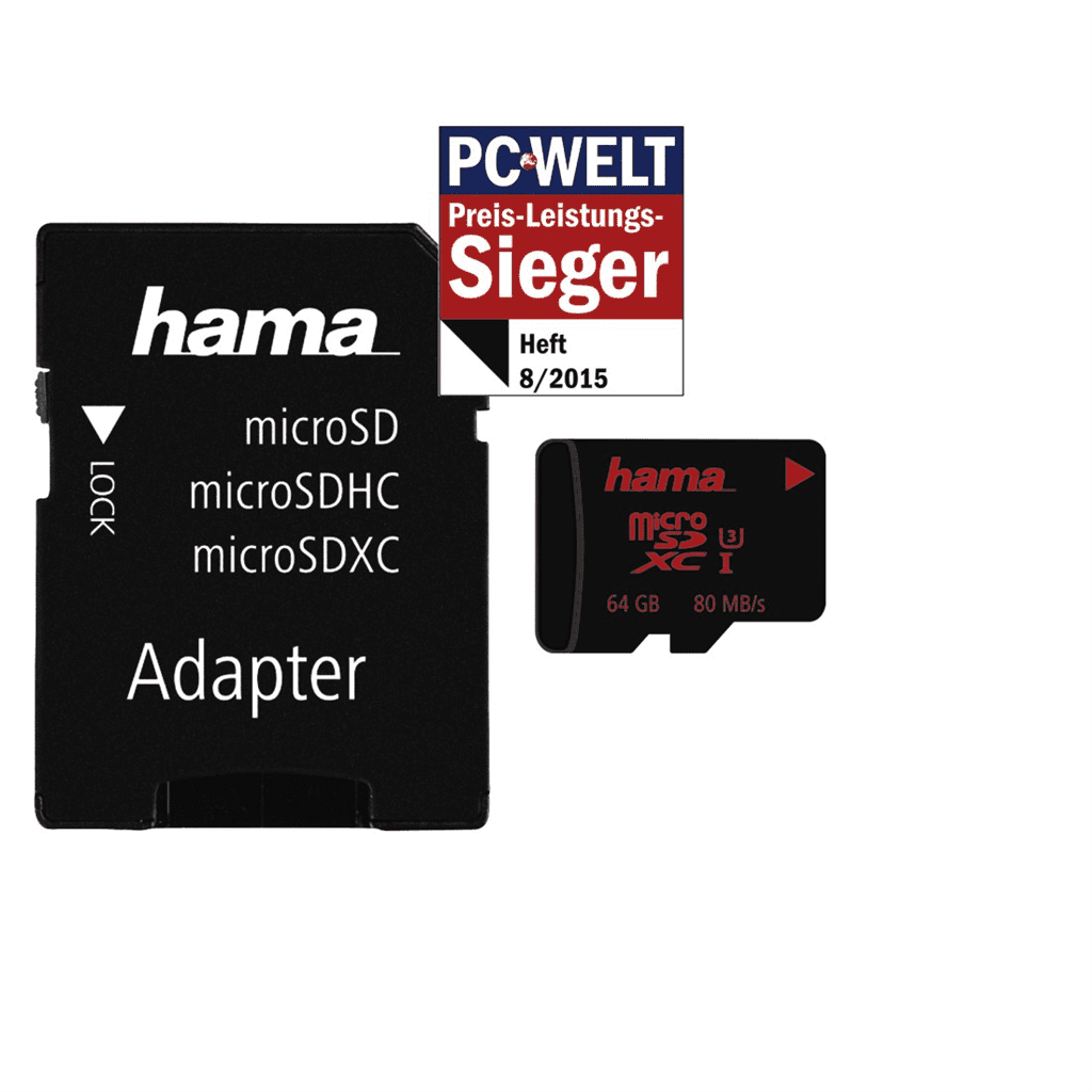 Hama microSDXC 64 GB UHS Hitrostni razred 3 UHS-I 80 MB/s + adapter