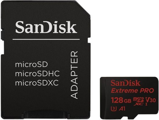SanDisk spominska kartica Extreme Pro Micro SDXC A1 Class 10 V30 UHS-I U3, 128GB