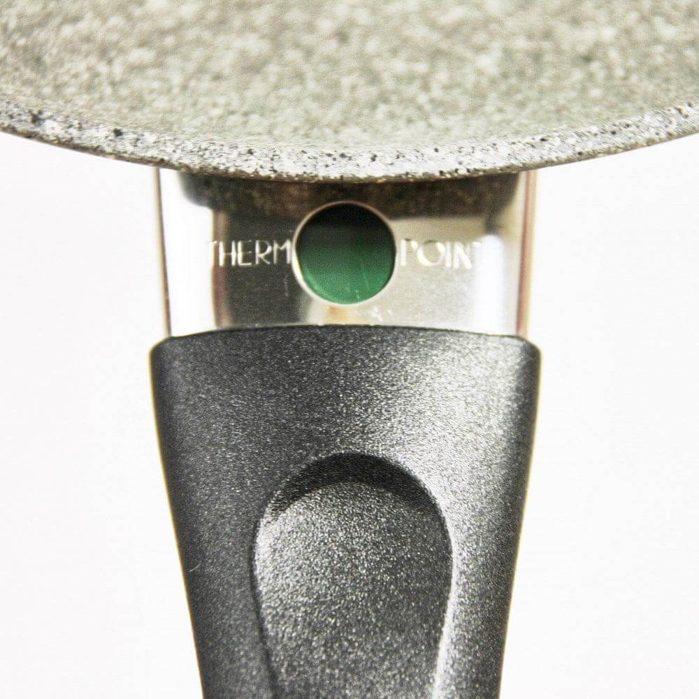 NEPRIJEMLJIV PREMAZ S KAMNITIM SRCEM. Zdravju varna kovinska zlitina v granitnih ponev Ballarini Ferrara zagotavlja odlično porazdelitev toplote, izjemna vzdržljivost kamna pa obnavlja pristno vez z naravo. Naravna barva in videz linije Ballarini Ferrara naredita to granitno ponev resnično edinstveno. Zahvaljujoč 4 mm debelemu premazu Granitium Extreme vsaka izkušnja cvrtja vzbuja naravna čustva, tako kot v antičnih časih, ko so hrano pripravljali neposredno na kamnu. POVRŠINA GRANITNE POSODE. Mineralni delci, ki jih vsebujejo premazi Ballarini Granitium Extreme, zagotavljajo: dolgo obstojno granitno ponev, površino nelepljivo proti praskam, visoko odpornost na poškodbe v pomivalnem stroju, enostavno čiščenje površine ponev po uporabi ter varnost za zdravje in okolje – granitna ponev ne vsebuje PFOA, nikljevih spojin ali težkih kovin. ZUNANJI premaz, dodatno prevlečen s keramično plastjo, olajša čiščenje in zmanjšuje učinke izgorevanja maščob med cvrtjem – brez lis na zunanji strani. DEBELINA DNA: Premer ponev: 24 cm. Debelina dna: 4,8 mm. ROČAJ GRANITNE PONVE: Opremljen z indikatorjem temperature THERMOPOINT, ki signalizira stopnjo segrevanja in hlajenja ponve. Odporna na vročino do 160 stopinj Celzija – primerna za pečico. Ergonomski, toplotnoizolacijski ročaj. MATERIAL: Ponev je izdelana iz kovanega, večplastnega, visokokakovostnega, živilom varnega aluminija, ki tvori njeno ohišje. Celotna ponev je prevlečena s premazi Granitium Extreme, tako znotraj kot zunaj. DIMENZIJE GLOBOKE GRANITNE PONVE: Na voljo s premerom 24 cm.
