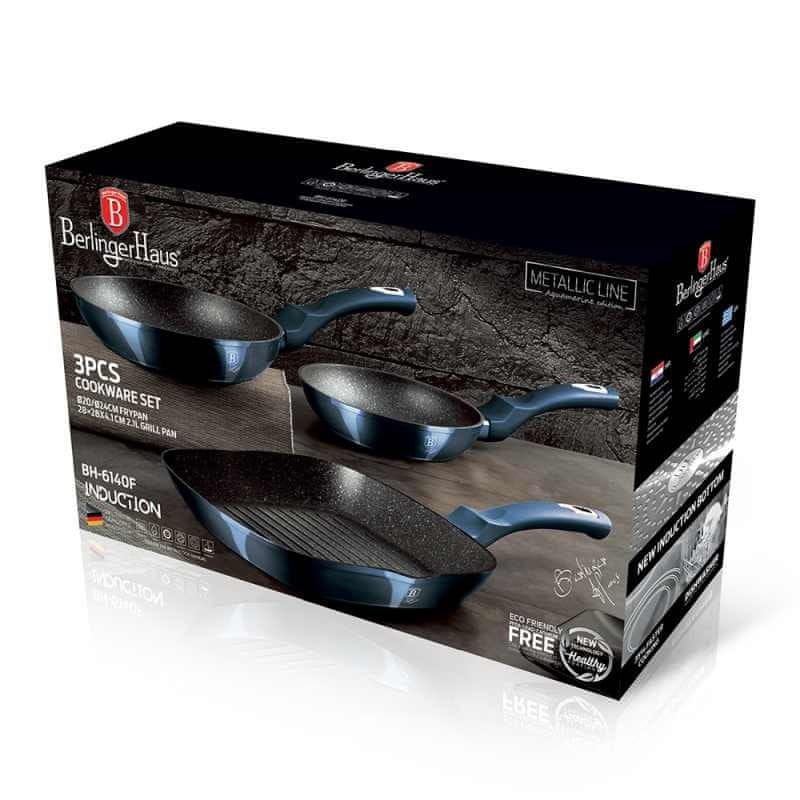 • Tridelni komplet ponvic iz kolekcije Aquamarine Metallic Line ne navdušuje le z nezamenljivim sodobnim dizajnom v temno modri barvi, temveč predvsem z edinstvenimi lastnostmi – domena tega kompleta je 3-slojna …