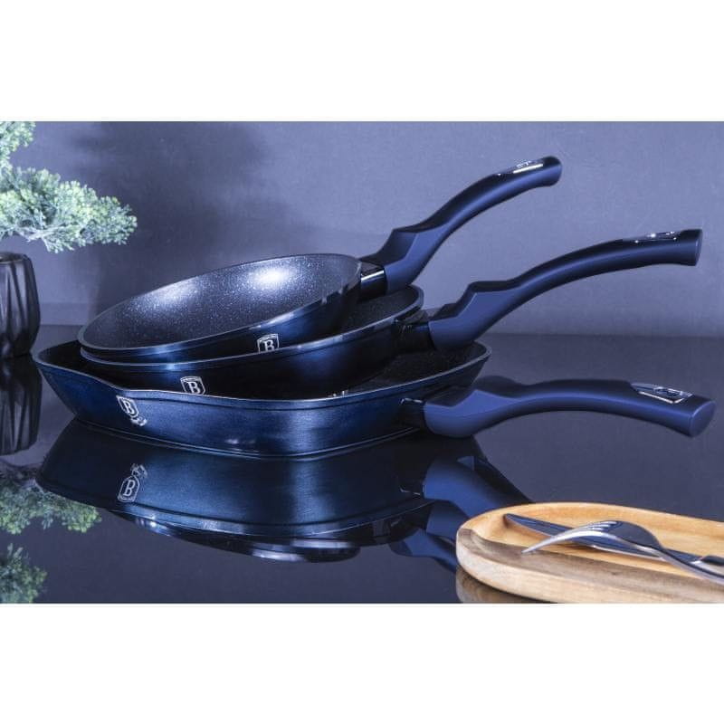- domena tega kompleta je 3-slojna nelepljiva površina z marmornim vzorcem, za katero je značilna popolna nelepljivost, hrana se ne zažge, zaradi česar so posode in ponve zelo enostavne za čiščenje