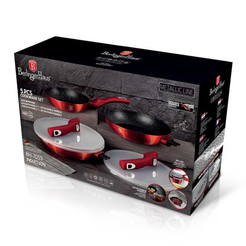 Berlingerhaus Komplet posod z odstranljivim ročajem 5 kosov Burgundija Metallic Line BH-7053