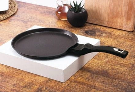 Elegantna rešetka za palačinke BerlingerHaus z ergonomskim ročajem, ki se med kuhanjem nikoli ne opeče. Ponev za palačinke ima nekonvencionalno znižan rob, ki olajša obračanje testa. Neprijemljiva površina z marmornatim vzorcem omogoča enostavno pripravo palačink, ki jim ni treba dodati niti kapljice dodatnega olja. Testo se ne zažge, čiščenje pa je vprašanje nekaj sekund. Ponev za palačinke je združljiva z vsemi vrstami ogrevanja in je primerna tudi za indukcijo.