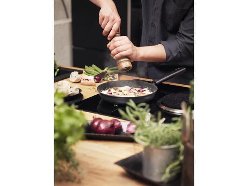 Neprijemljiva ponev Ceratec ne vsebuje fluora in drugih škodljivih kemikalij. Na pripravljeni hrani ustvari čudovito zlato skorjico. Debela trislojna plošča je optimizirana za enakomerno segrevanje na vseh kuhalnih ploščah. Narejena je iz 90-odstotno recikliranega nerjavečega jekla. Lepa brušena površina. Izdelano na Finskem. Premer: 24 cm.