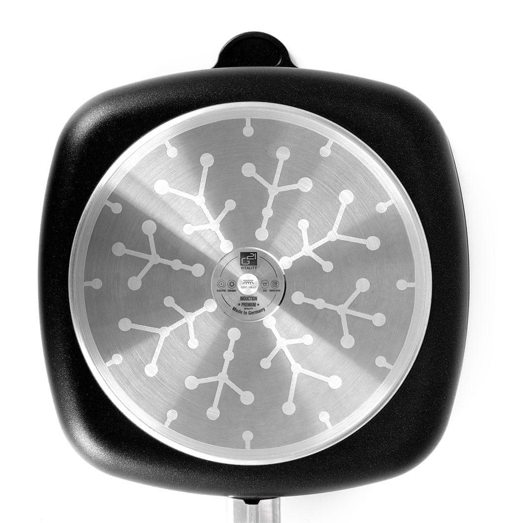Oglejte si kvadratno, 8 cm visoko ponev, ki izpolnjuje vse te zahteve za popolno ponev. Je vsestransko uporaben za vse vrste ogrevanja, toploto prevaja popolnoma enakomerno, hrana se zaradi posebnega nelepljivega premaza LOTAN ne zažge, zato lahko cvrete ali pečete brez uporabe olja.