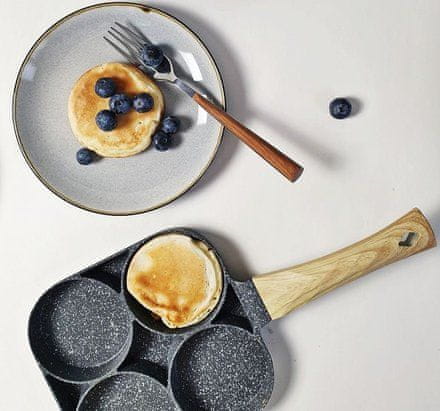 Ta ponev za palačinke in hamburgerje je vsestranski pomočnik pri pripravi različnih jedi. S 4 visokimi luknjami je kot nalašč za pripravo ocvrtkov, hamburgerjev, volov, krompirjevega čipsa in drugih jedi. Ponev je izdelana iz masivnega litega aluminija s neoprijemljivo MARBORNO površino, ki zagotavlja popolno neoprijemanje in enostavno čiščenje. Mehak ročaj v izvedbi iz svetlega lesa zagotavlja udoben in varen oprijem, ne da bi se opekli.