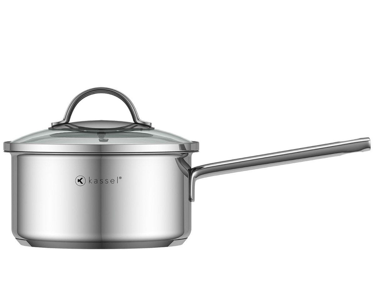 Ponev ALICE blagovne znamke Kassel je izdelana iz visokokakovostnega nerjavečega jekla Cr-Ni 18/10, poliranega do visokega sijaja. Ponev ima priročen in praktičen pokrov iz kaljenega stekla z odprtino za odvajanje pare ter eleganten ročaj iz istega nerjavečega jekla.