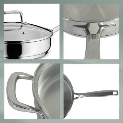 - nerjavno jeklo najvišje kakovosti 18/10– odlične lastnosti za kuhanje, cvrtje, dušenje in peko- oblikovno odporna posoda s trdno konstrukcijo, ki se lahko močno segreje- večplastni sendvič …