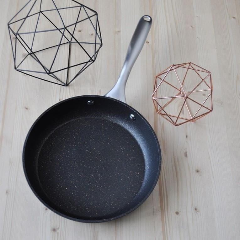 - Vzdržljiva in lahka prešana aluminijasta ponev debeline 4mm, z ojačanim izpostavljenim delom roba, debeline kar 5mm