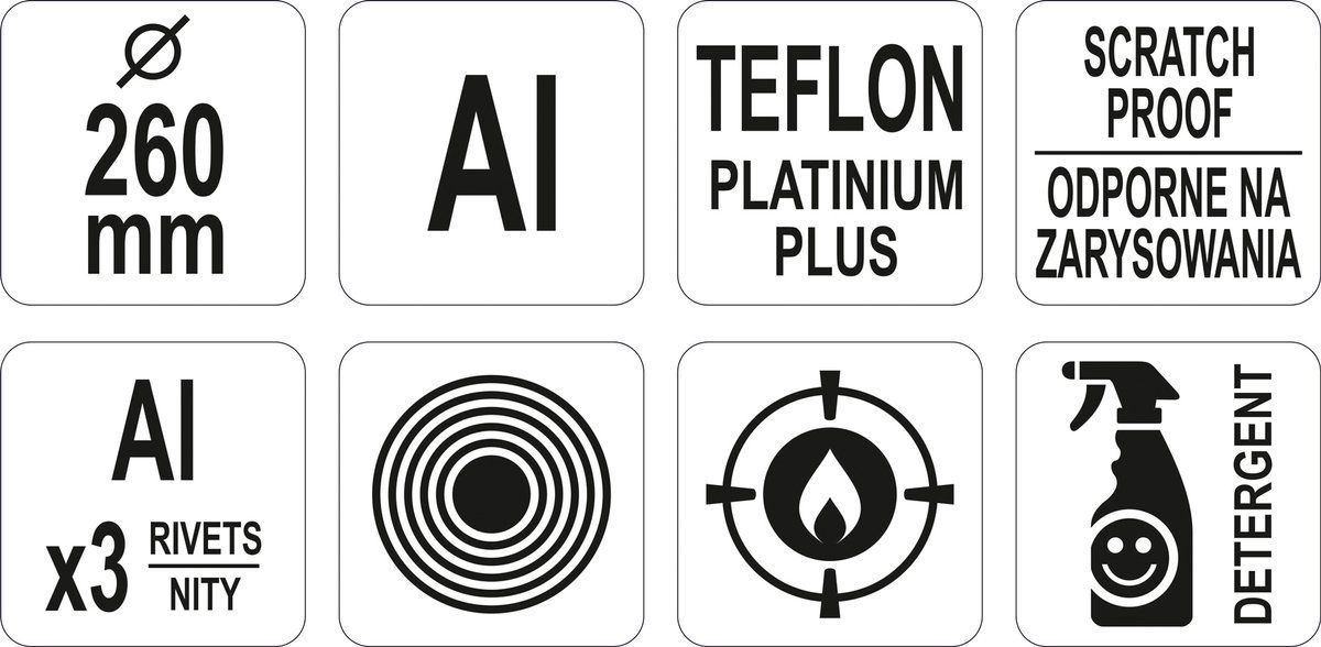 Den viktigaste fördelen med TEFLON™ PLATINUM PLUS-beläggningen är dess höga motståndskraft mot nötning och repor. Det är möjligt att använda köksredskap av metall, vilket skiljer YATO stekpannor från andra stekpannor som finns på marknaden.