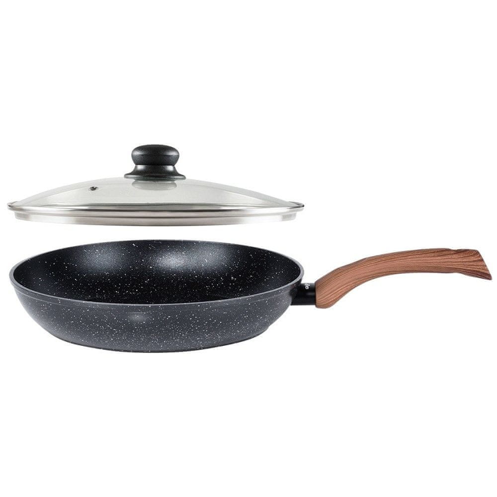 shumee Granitna ponev s steklenim pokrovom BLACK&WOOD 28 cm