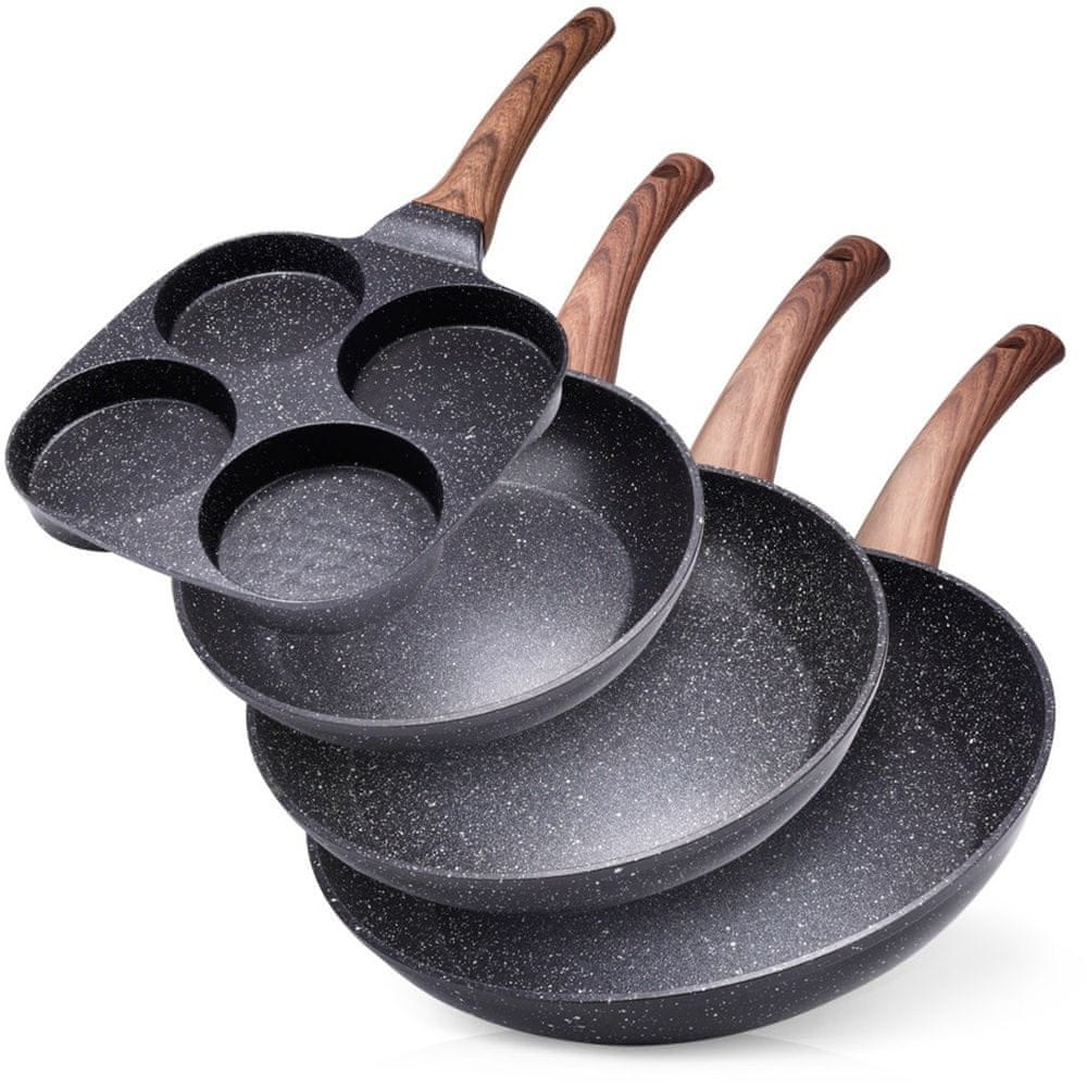 shumee Komplet granitnih ponv 20 / 24 / 28 cm + ponev za jajca 4 kosi BLACK&WOOD