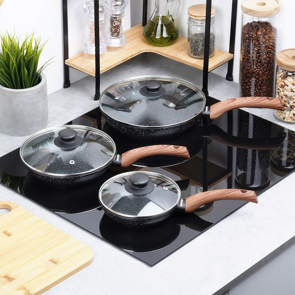 Komplet granitnih ponv s steklenimi pokrovi BLACK&WOOD 16 / 20 / 24 cm 3 kosi. Celoten opis