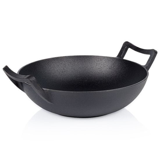Litoželezna ponev Wok – Ponev v stilu voka, v celoti izdelana iz litega železa. Pekač ima premer 32 cm. Še posebej priporočljivo za pripravo jedi po navdihu azijske kuhinje. Posode iz litega železa odlično porazdelijo toploto in dolgo časa zadržujejo visoke temperature. Zunanje mere: dolžina z ročaji 40 cm, višina ponve 9 cm in višina z ročaji 13 cm.
