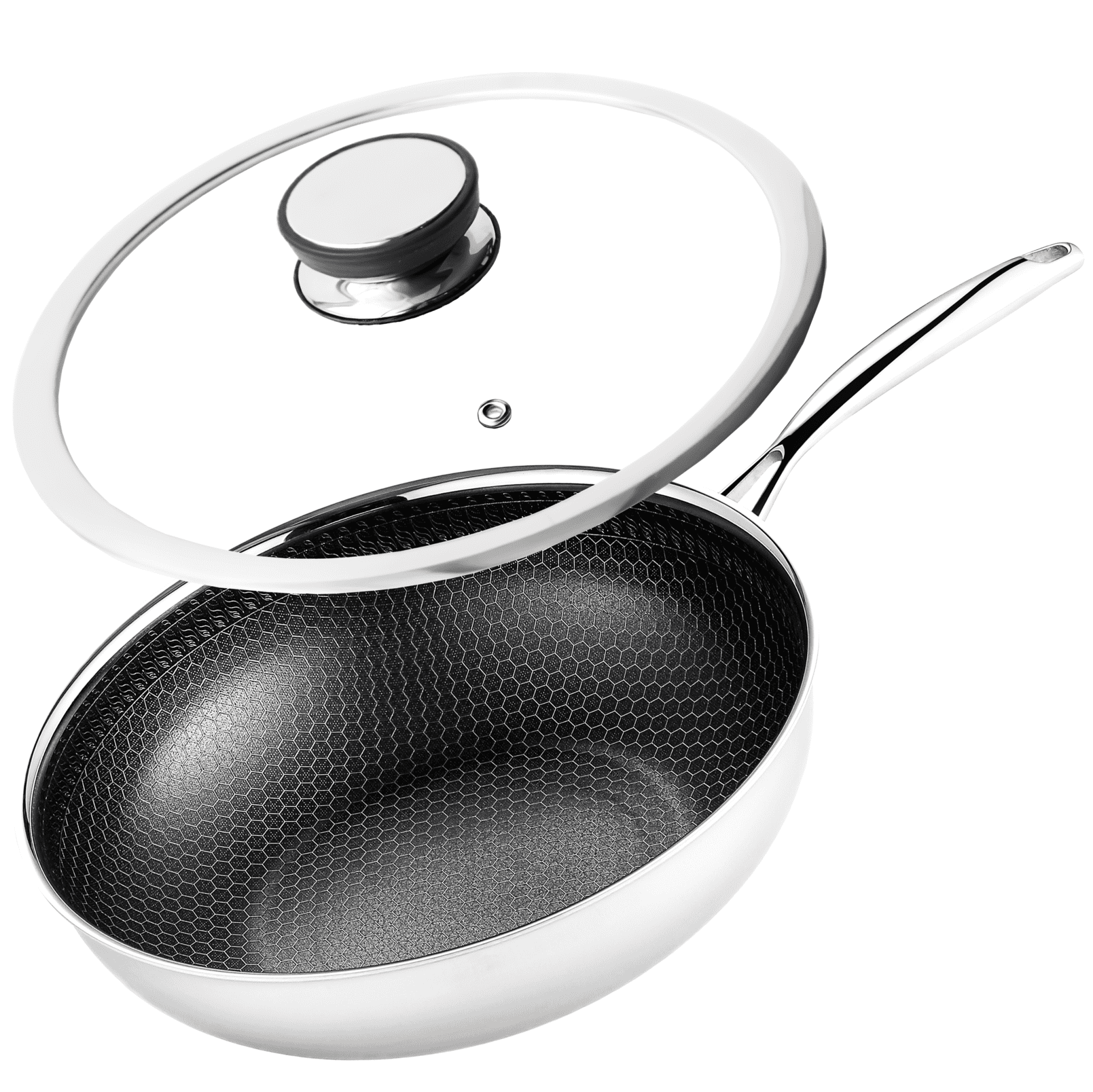 shumee Profesionalna keramična ponev Kanso Wok 30 cm s pokrovom, satjasta, indukcija, plinska, nerjaveče jeklo