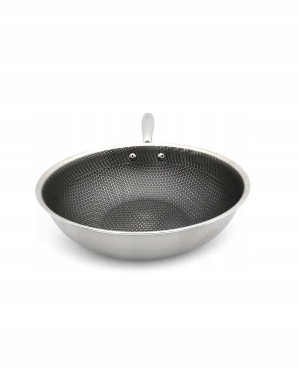 - Notranjost voka je prekrita s satjasto strukturo, , ki zagotavlja enakomerno porazdelitev maščobe in zmanjšuje tveganje prijemanja hrane.