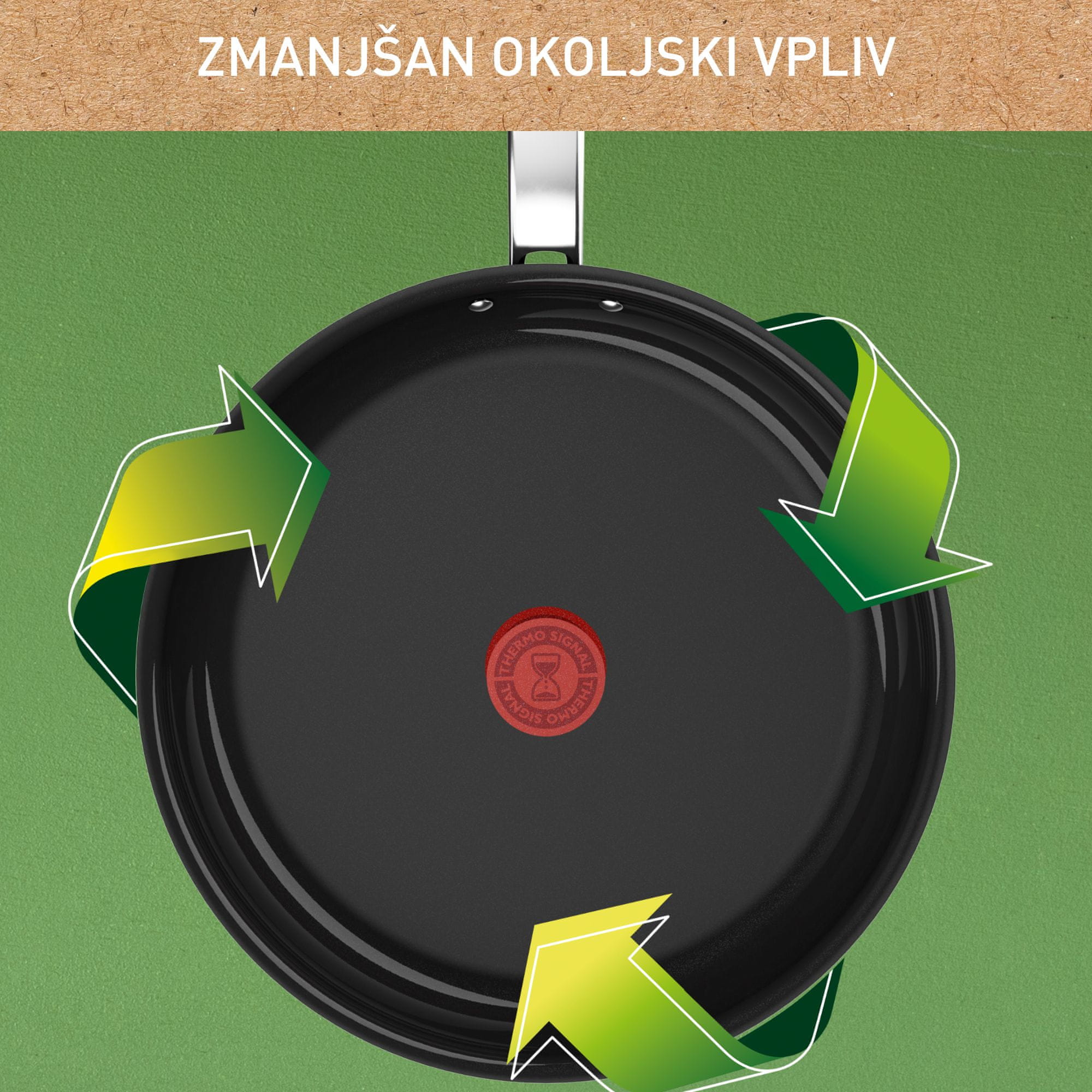 Tefal Renew+ je zasnovan z mislijo na trajnost in vsakodnevno uporabo, saj je izdelan iz recikliranega aluminija in opremljen z izjemno trpežno keramično oblogo Inoceram, ki preprečuje prijemanje in je odporna proti luščenju ter madežem. Tehnologiji Thermo-Signal™ in Thermo-Fusion™ zagotavljata popolno temperaturo kuhanja ter hitro in enakomerno segrevanje, ponev pa je popolnoma združljiva z vsemi kuhališči, vključno z indukcijo.