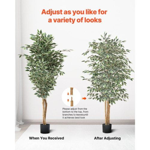 Ta umetna fikusova drevesa ponuja realistično in živahno dopolnilo vsakemu notranjemu prostoru ki zagotavlja videz bujne zelenjave brez potrebe po stalnem vzdrževanju. Oblikovana z naravnimi zelenimi listi in naravnim lesenim debelom prinaša pridih narave v domove pisarne ali poslovne prostore skozi vse leto. Prožne veje omogočajo oblikovanje drevesa po vašem okusu medtem ko ognjevarna in brez vonja materiala zagotavljata varnost in brezskrbnost.
