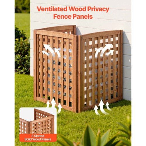 Ta lesen zasebni ograji ponuja stilsko rešitev za zakrivanje klimatskih naprav, smetnjakov ali bazenske opreme v vašem vrtu. Njena nastavljiva zasnova s tremi paneli zagotavlja zasebnost ob hkratnem omogočanju pretoka zraka. Dimenzije: 810×960 mm. Celoten opis