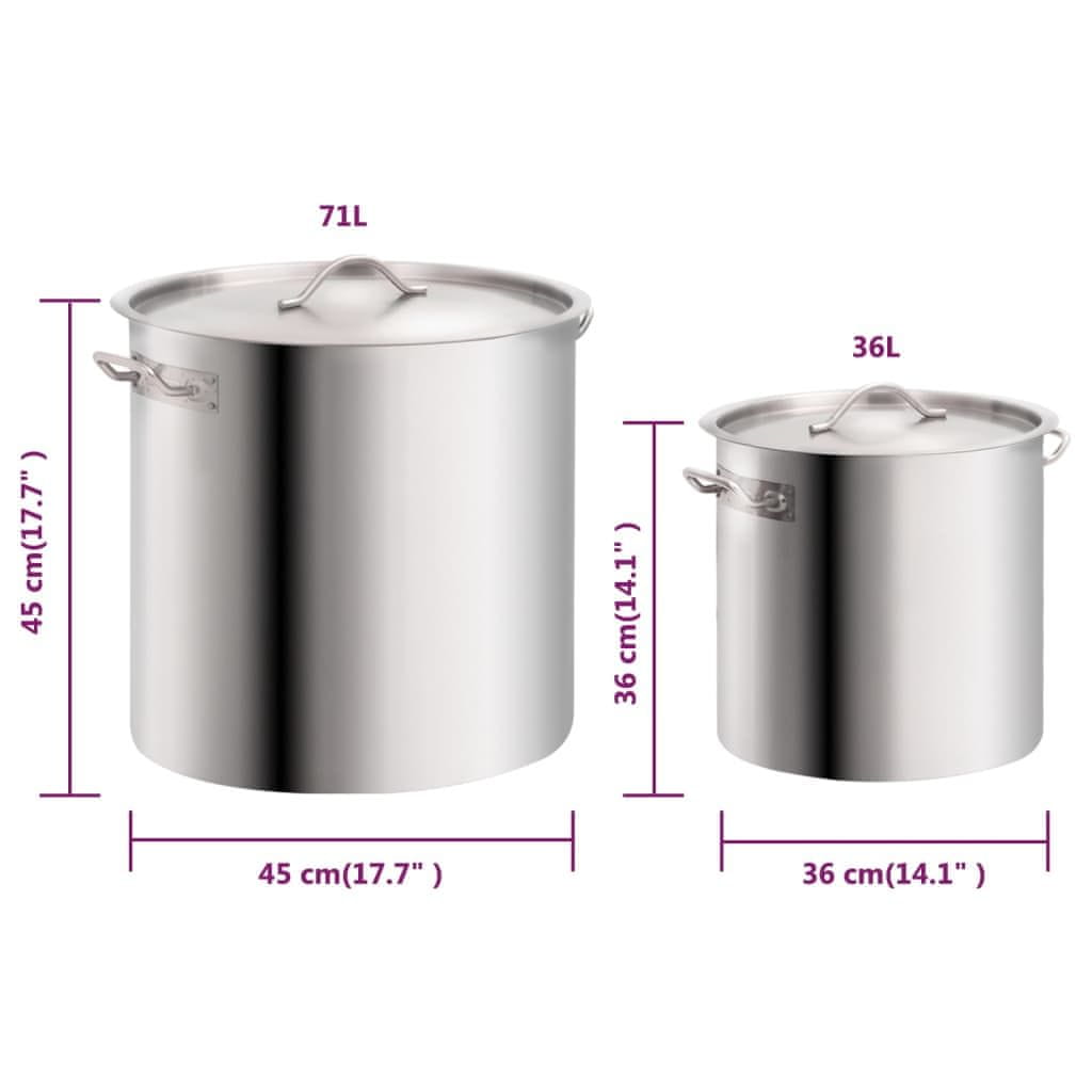 Vidaxl Lonci za juho 2 kosa 71/36 L nerjaveče jeklo