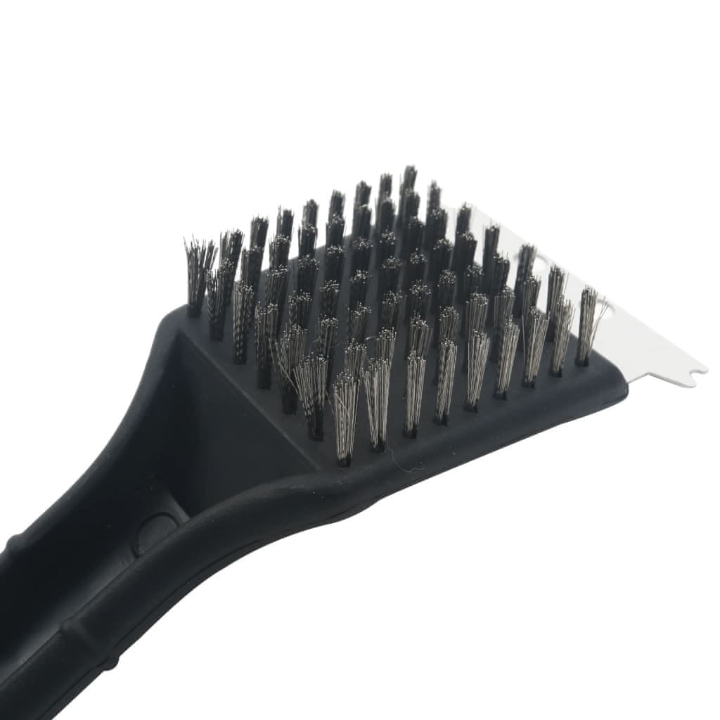 Z našo preprosto krtačo za žar z vgrajenim strgalom lahko preprosto očistite svoj žar, da bo sijoč in videti kot nov. Ščetine krtače so izdelane iz bakrene žice, kar vam omogoča učinkovito čiščenje žara, ne da bi ga poškodovali. Poleg tega vam bo vgrajeno strgalo iz visokokakovostnega nerjavečega jekla pomagalo odstraniti trdovratne madeže. Plastični ročaj ščiti vašo roko pred vročino žara. Ta krtača je primerna za vse žare (plinski in na oglje).