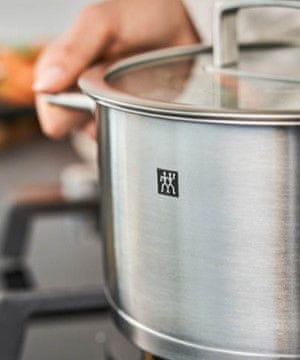 Komplet ZWILLING Flow 5-delni ponuja vse kar potrebujete za kuhanje — tri različne velike lonce, en pisker in en mali lonec, primerni za različne količine in jedi. Izdelani so iz visokokakovostnega nerjavečega 18/10 jekla, ki je odporen, higienski, nevtralen okusu in enostaven za čiščenje. SIGMA Classic dno z aluminijastim jedrom omogoča hitro in enakomerno porazdelitev toplote, kar prihrani energijo in zagotavlja ravnomerno kuhanje.