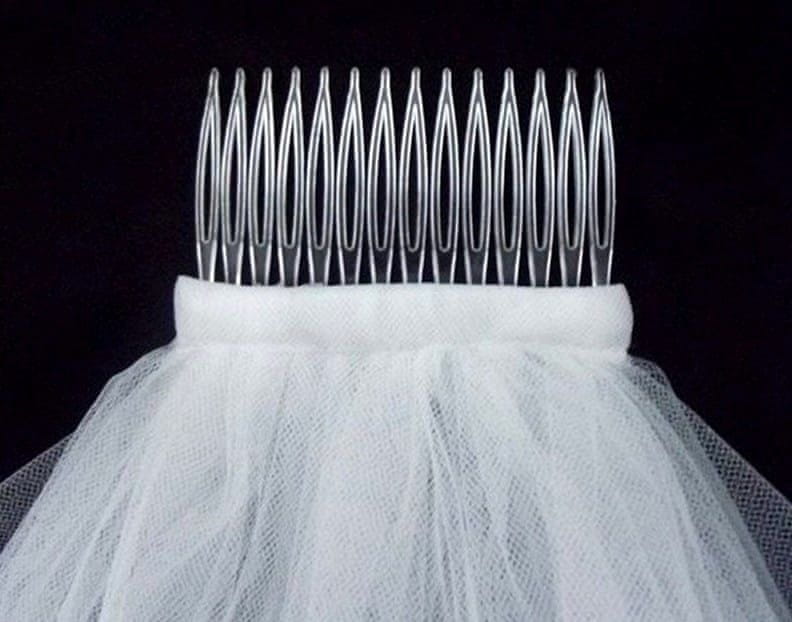 Eleganten poročni veo dolžine 84 cm je popoln dodatek za neveste, ki želijo svoji poročni podobi dodati sofisticiran pridih. Izdelan iz nežnega dvoslojnega tila v dvojni beli barvi, veo ponuja bogat in luksuzen videz, medtem ko volumen in dramatiko zagotavlja njegov skrbno zasnovan dizajn. Zaradi praktičnega pritrjevanja na grebenčku se enostavno namesti in varno drži čez ves dan.