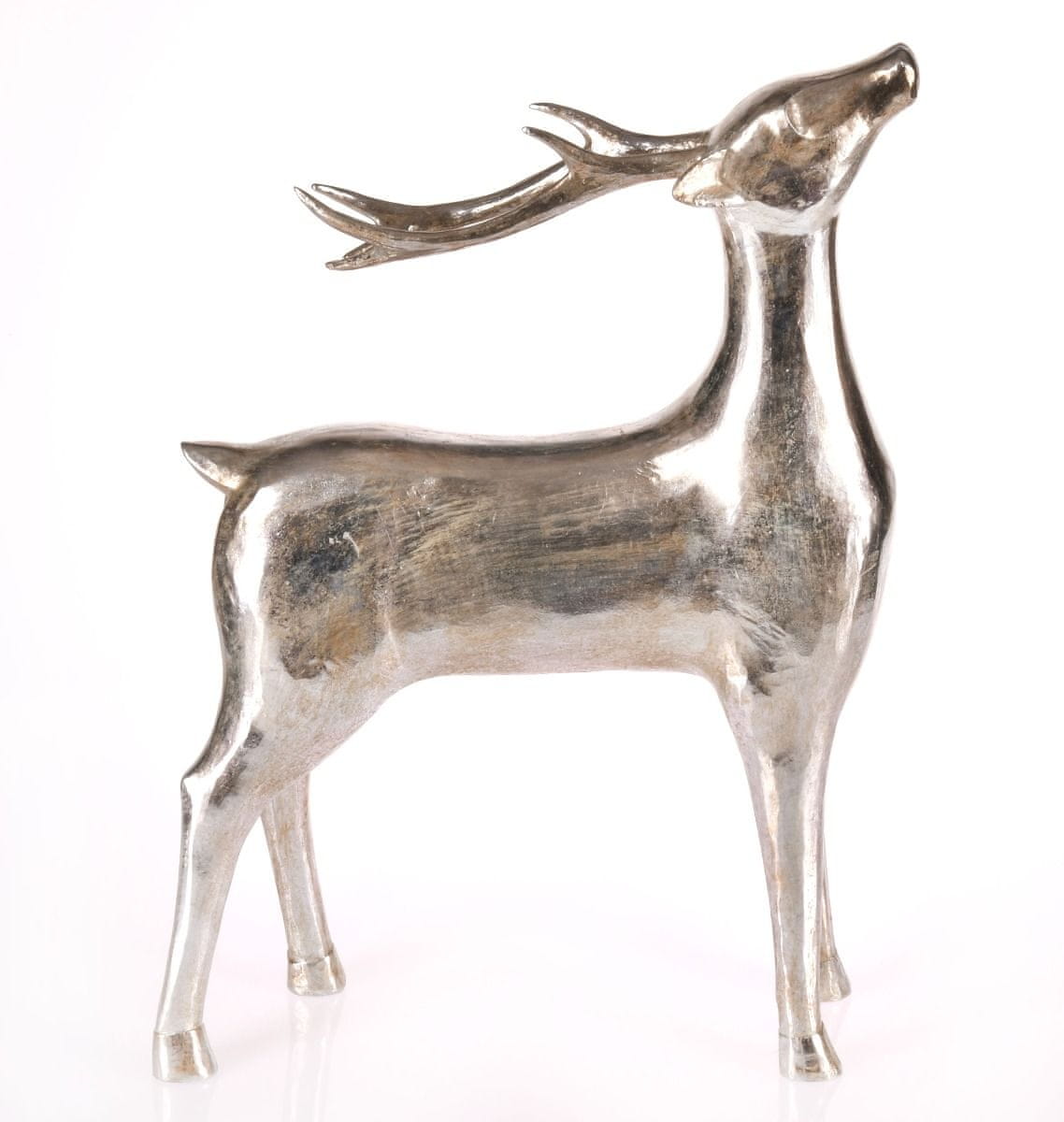Srebrni stoječi jelen, visok 43 cm. Jelen, prekrit z nežno srebrno barvo, je izjemno minimalističen, visoki rogovi pa mu dodajo čar. Podstavek figurice sestavljajo štiri robustne noge jelena. Čudovita figurica je lahko vzdušni dodatek k vašemu božičnemu aranžmaju. Božič pomeni tradicijo in edinstven Celoten opis