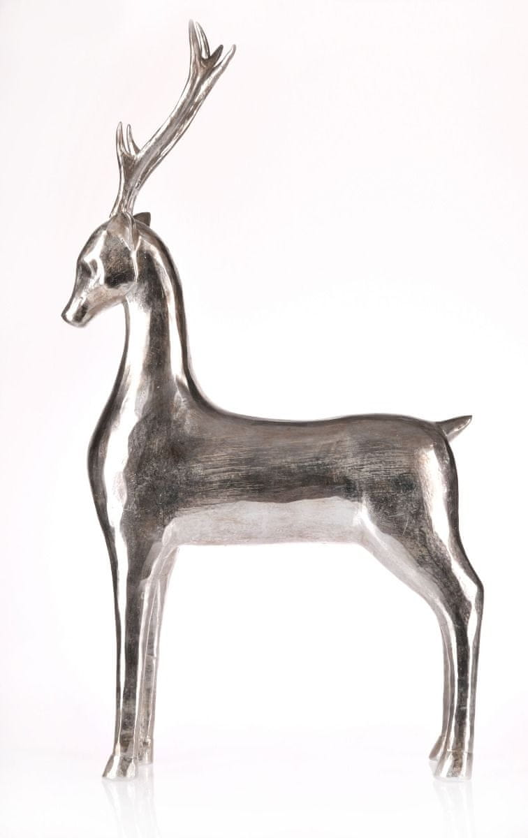 Srebrni stoječi jelen z višino 58 cm. Jelen, premazan z nežno srebrno barvo, je izjemno minimalističen, visoki rogovi pa mu dodajo čar. Podstavek figurice sestavljajo štiri robustne noge jelena. Čudovita figurica je lahko vzdušni dodatek k vašemu božičnemu aranžmaju. Božič pomeni tradicijo in edinstveno lepoto. Vzdušje božiča, zaprto v brezčasnih okraskih, bo poskrbelo, da bo vsaka notranjost dobila nov značaj. Čudovita božična drevesca, edinstvena osvetlitev LED ter izvirni okraski in dekoracije: bomboni, obeski, božične figurice, okrasne vejice in trstike bodo vsem članom gospodinjstva pričarali edinstveno vzdušje.