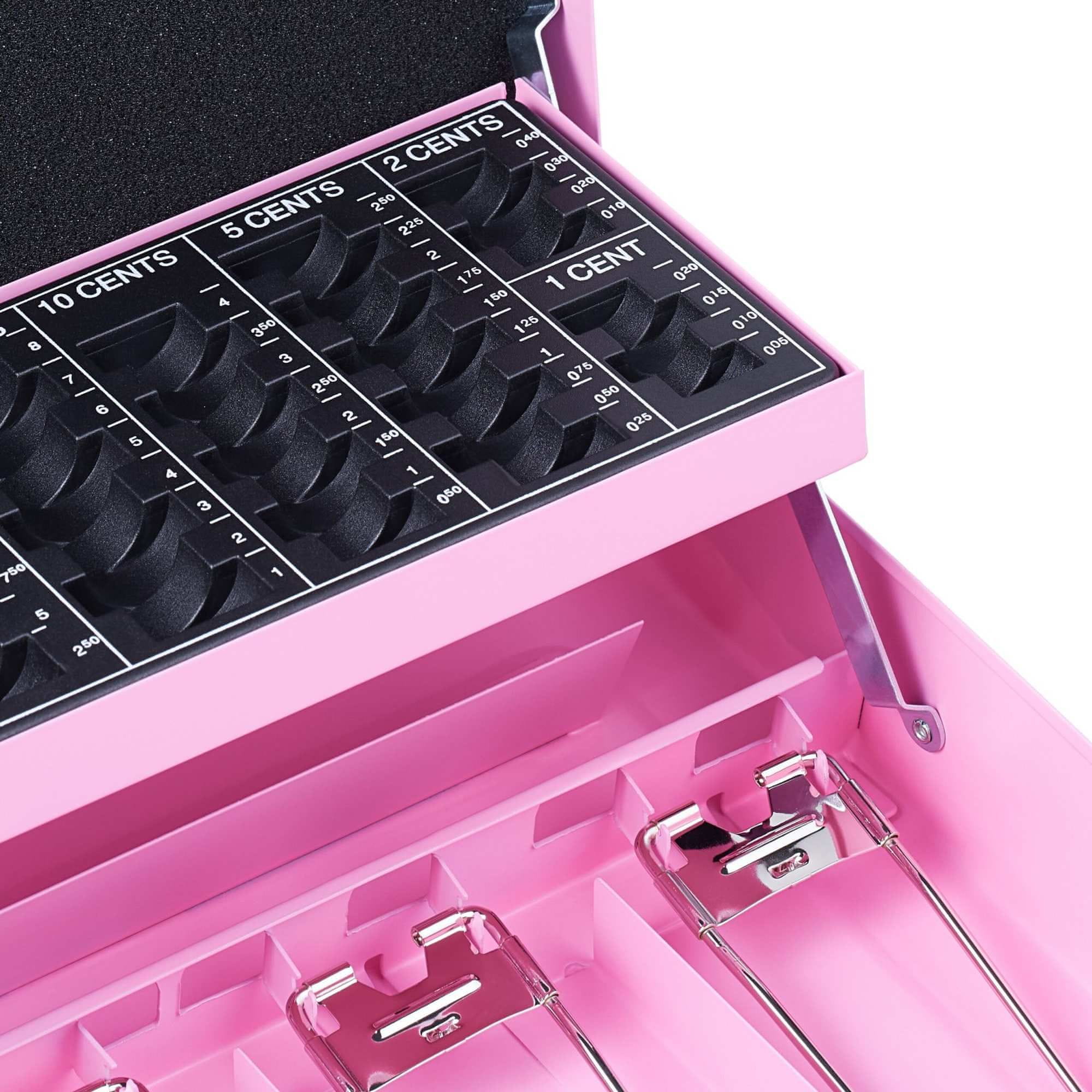 Predal za denar z odstranljivim vložkom za kovance zagotavlja varno shranjevanje gotovine za dom ali dogodke. Organizirajte kovance po vrednosti za enostaven dostop in transport s priročnim ročajem.