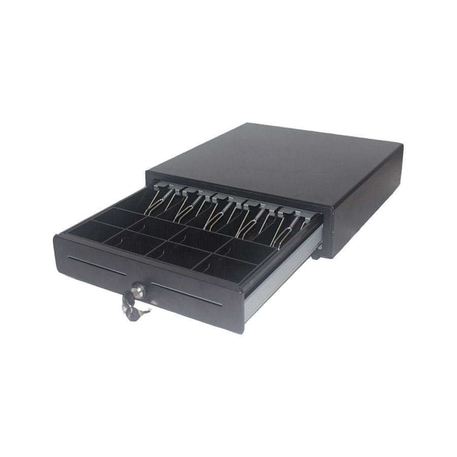 POS predal za denar 410, kovinski se odpira na dva načina in sicer ročno s ključem ali elektronsko. Vsebuje štiri ležišča za bankovce in osem čašic za kovance. Blagajna ima kovinsko ohišje in vodila, vstavek za denar pa je plastičen. Mere predala 410 × 420 × 100 mm, masa 7 kg. Celoten opis