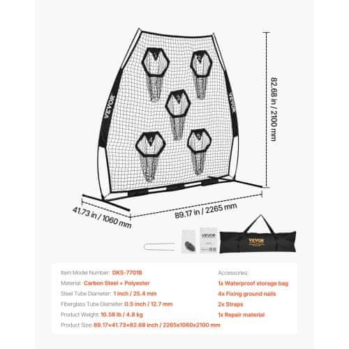 Ta nogometni trener z metno mrežo s petimi ciljnimi žepi pomaga izboljšati natančnost metov in podajanje quarterbacka. Njegova velika površina 2133,6×2133,6 mm in trpežna mreža brez vozlov ga naredita idealnega za učinkovite samostojne ali skupinske vadbe. Celoten opis