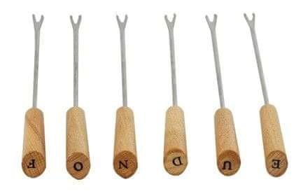 -Material: keramika, nerjavno jeklo, krom, les -Barva: črna z naravno rjavo in srebrno -Krasen dizajn -Izjemno kakovostna zasnova -Otračno stojalo –6 x vilice in žlica za fondi