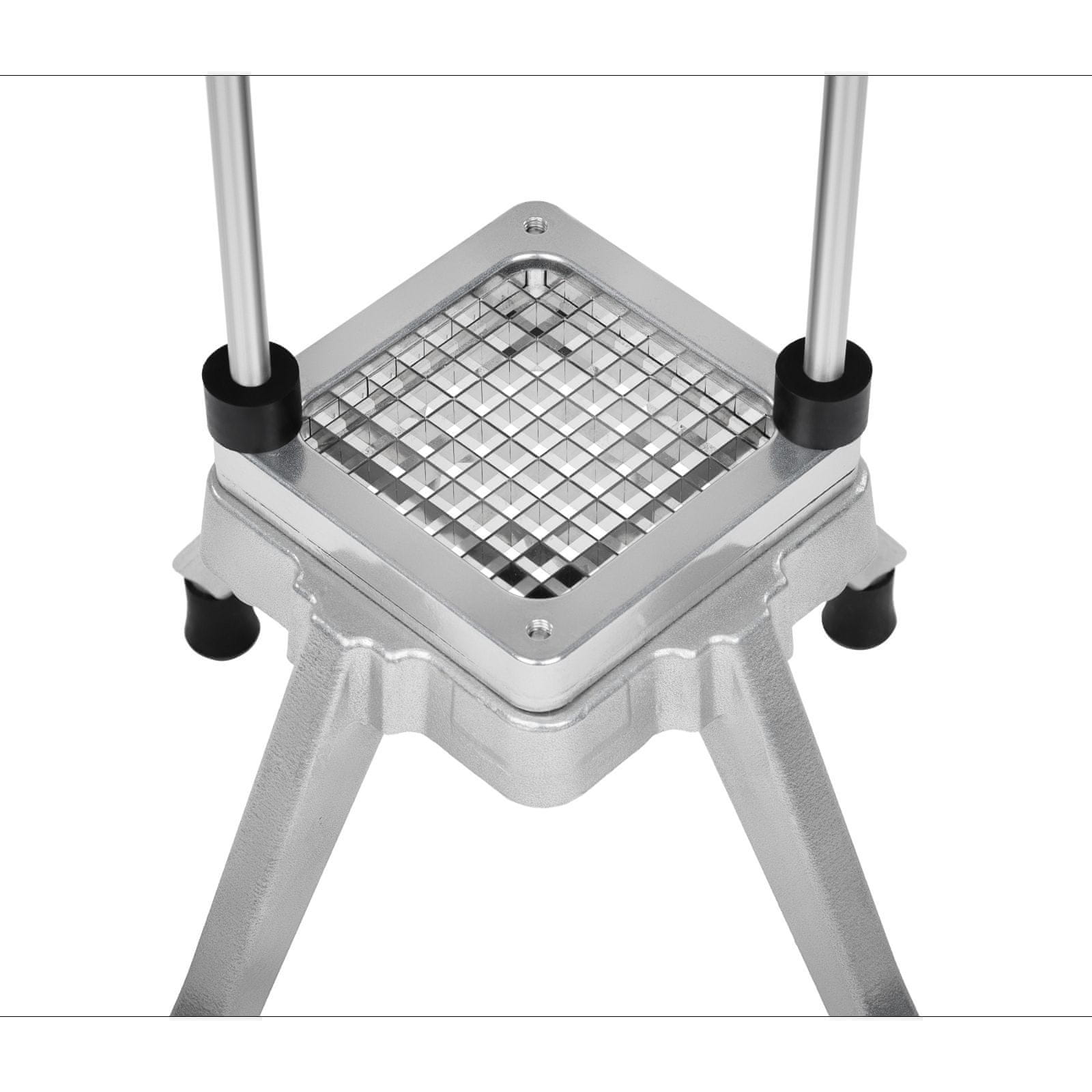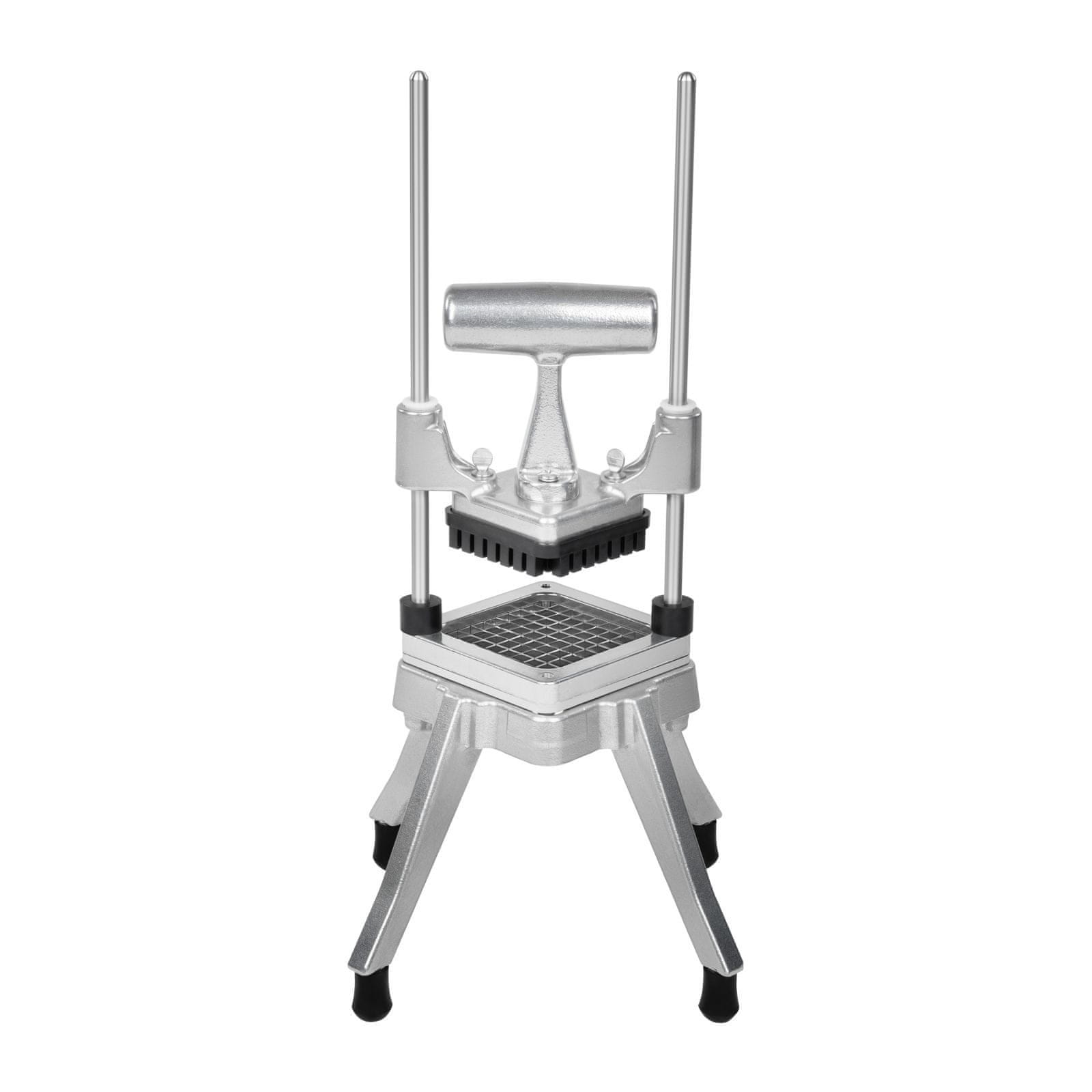 Profesionalni ročni rezalnik za hitro rezanje sadja in zelenjave na kocke velikosti 7 mm x 7 mm, ki je v celoti izdelan iz jekla.