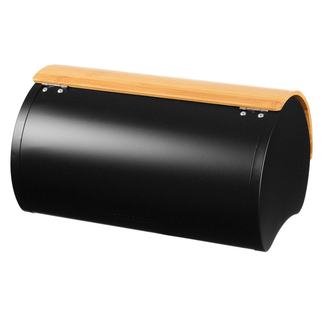 Sodobna oblika krušne skrinje, njena presenetljiva oblika in kombinacija kovine v črni barvi z bambusom so na pultu videti odlično. Celoten opis