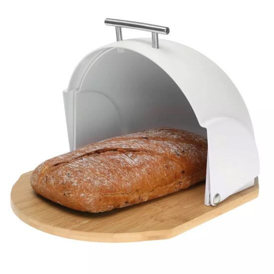 Specifikacija: dolžina: 37 cm / širina: 26,5 cm / višina: 20 cm Dodatne informacije: Akrilni hlebec kruha na bambusovi deski Enostavno odpiranje brez zavzemanja dodatnega prostora Zasnovan za shranjevanje vseh vrst kruha Embalaža: barvna kartonska škatla Na voljo v beli barvi.