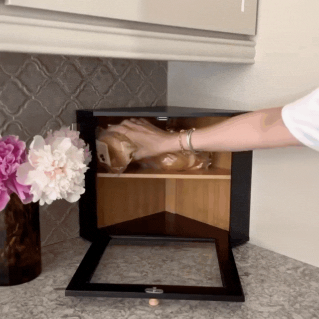 Ste naveličani suhih, zmečkanih hlebcev? CornerPantry dvonadstropna omarica za kruh je zasnovana tako, da ohranja kruh svež več dni – brez izgube prostora na pultu.