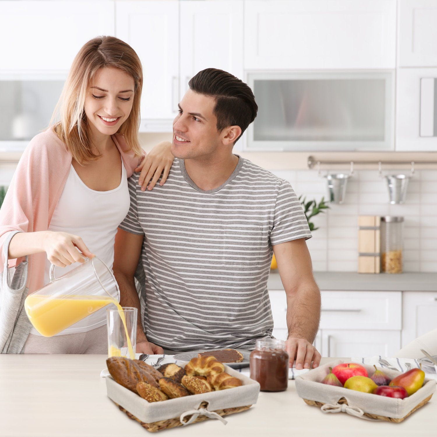 • Elegantno predstavite sveže pecivo z naravnim slamnatim in kremnim dizajnom.