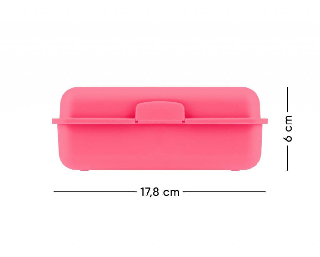 • Plastična škatla za prigrizke v roza barvi – Škatla se zapira z enojno ključavnico in ima predelno steno.- Ni priporočljivo uporabljati v pomivalnem stroju.