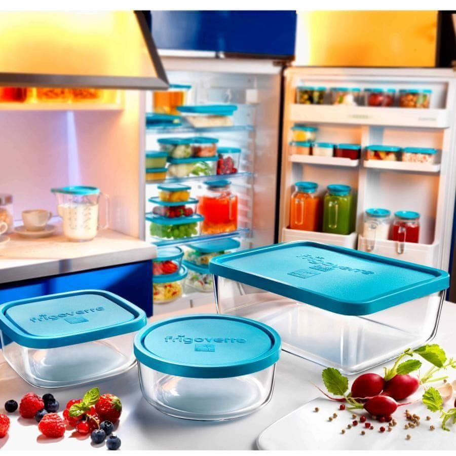 Posoda Frigoverre je narejena iz najkakovostnejšega kaljenega stekla, ki je odporen na poškodbe in različne temperature. Posoda (brez pokrova) je primerna za mikrovalovno pečico in pomivalni stroj (brez pokrova), celotno pa lahko postavimo tudi v zamrzovalnik. Plastični pokrov je izdelan iz materiala, ki ne vsebuje škodljivih snovi (brez BPA). Profilirana zaporka na pokrovu posodo popolnoma zapira, zato ohranja obstojnost, vonj in svežino živil.