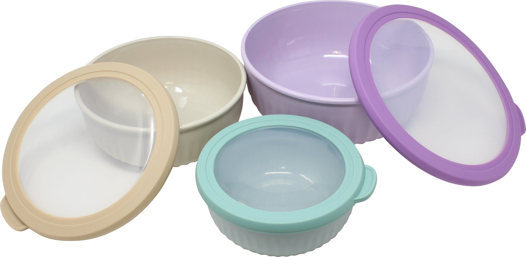 PEDRINI PLASTIČNE POSODE S POKROVOM različnih premerov 14, 18 in 21 cm so neprodušne zaprte sklede, krožne oblike v pastelnih sodobnih odtenkih. V setu so tri sklede različnim dimenzij in prostornine: