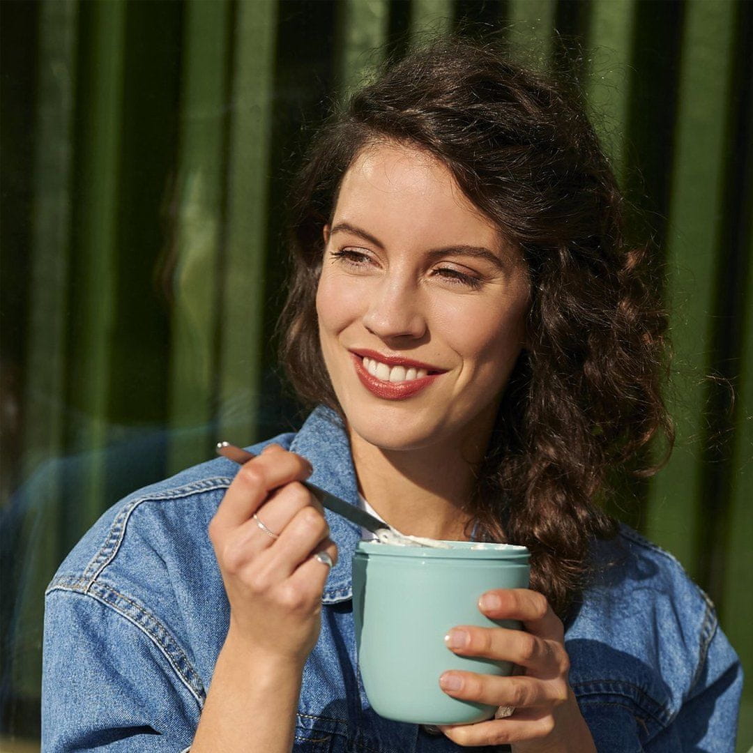 Popestrite si čas kosila s to priročno posodico za prenašanje in shranjevanje malice, kosila in prigrizkov – lunch pot Ellipse. Dva velika predelka (500 ml in 200 ml) imata svoja pokrova, kar pomeni, da lahko prenašate dve različni hrani, ne da bi se med seboj pomešali. Na primer, jogurt nalijete v večjo posodo, müsli ali sadje pa v manjšo. Vsebina zgornje prozorne posode je 200 ml, kar pomeni, da gre vanjo približno 75 gramov müslijev ali sadja. Prostornina spodnje posode je 500 ml, kar zadostuje za izdatno količino rezancev ali jogurta. Posodico lahko uporabite tudi kot skodelico za juho, pasulj, golaž … Lunch pot je izdelan je iz trpežne zelene plastike, zato ga lahko postavite v zamrzovalnik, mikrovalovno pečico (z odstranjenim pokrovom) in pomivalni stroj. Upoštevajte, da zgornja prozorna posoda ni primerna za mikrovalovno pečico. Izdelano na Nizozemskem.