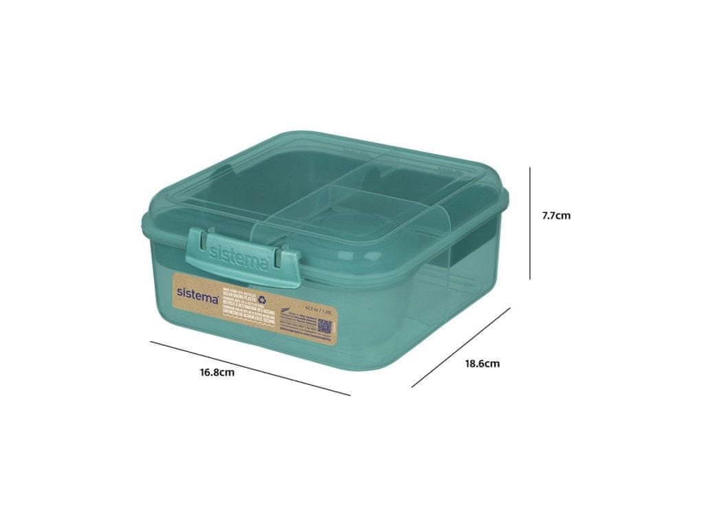 Sistema Razdeljena škatla za malico Ocean Bound Bento Cube s posodico za jogurt in 2 pladnjema 1,25 l, mešanica barv