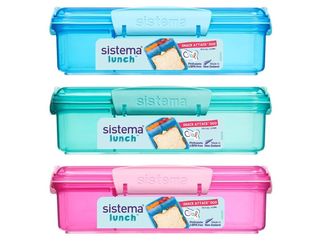 Sistema Split Snack Box škatla za kosilo Snack Attack Duo z dvema ločenima predaloma 975 ml, mix