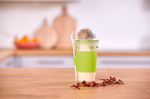• Posoda z ločenim prostorom za jogurt in žitarice, sadje ali oreščke (v pokrovu)