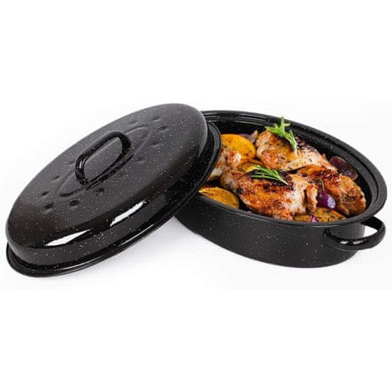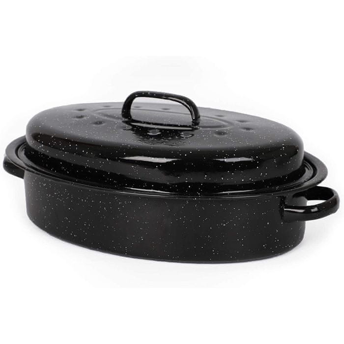 Trpežen pekač iz jekla z nelepljivo emajlirano prevleko, odporen na madeže. Uporaben do 230°C. Mere: 41×27×18 cm. Enostavno čiščenje! Celoten opis