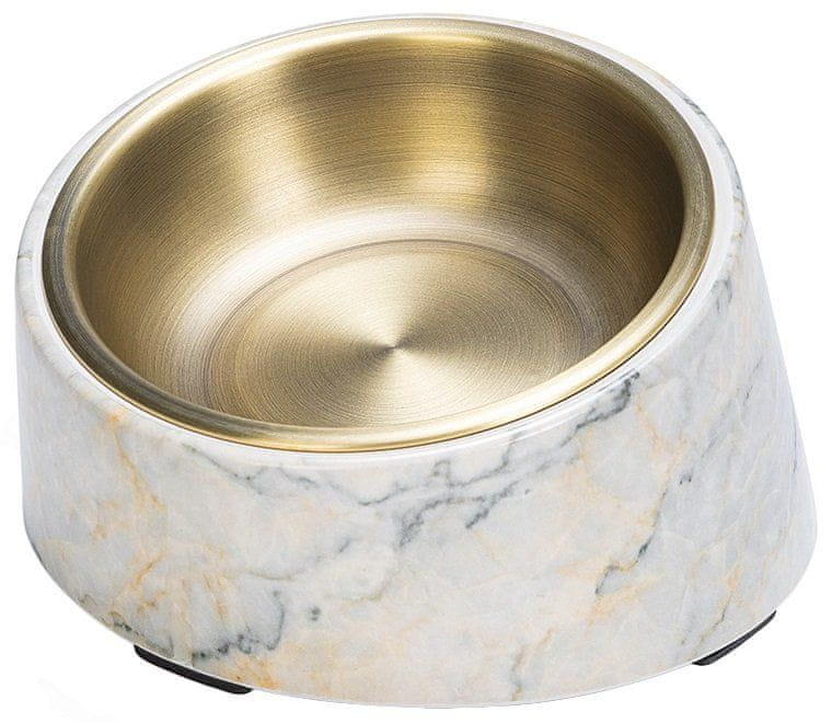 Naj vaša mačka jé v slogu! Ta razkošna skleda bo izstopala v vsaki notranjosti. Miška je oblikovana pod kotom, tako da lahko vaša mačka v vsakem grižljaju uživa v boljšem in sproščenem položaju. Skleda Vita ima odstranljivo skledo iz nerjavečega jekla s čudovitim matiranim zaključkom. Poleg tega nerjaveče jeklo ne vpija vonjav po hrani. Še ena velika prednost je, da jo lahko pomivate v pomivalnem stroju. Za preprečevanje zdrsa je dno opremljeno z nedrsečimi pokrovčki.